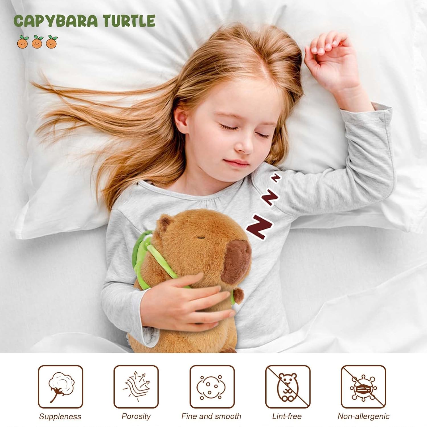 The capybara plush toy is made of soft fabric, which is skin-friendly and does not shed hair. The filling is full and fluffy, not deformed, not faded, and has strong air permeability.