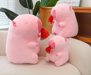 The spring inside the plush capybara may retract piece of watermelon automatically, giving your kids more play options and giving the toy a unique feature.