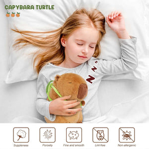 The capybara plush toy is made of soft fabric, which is skin-friendly and does not shed hair. The filling is full and fluffy, not deformed, not faded, and has strong air permeability.