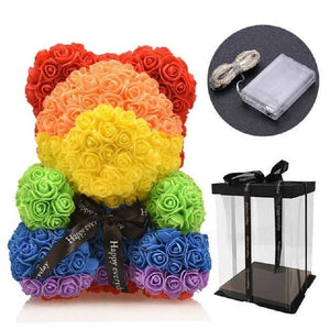 Gorgeous Rainbow Rose Teddy Bear with LED Light and Gift Box - 40cm