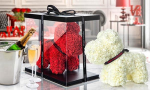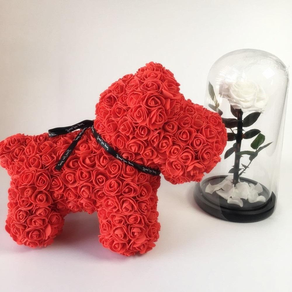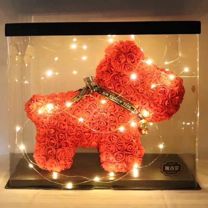 The rose dog can be the most beautiful gift, which is perfect for Mother's Day, Valentine's Day, Christmas, anniversary, birthday, wedding, or any best gift for any occasion, and the rose dog is verily the unique and precious gift. The rose dog can also be used as a photography prop and a gift for children.