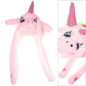 Cute Movable / Jumping / Dancing - Ear Pink Unicorn Funny Hat With LED Light