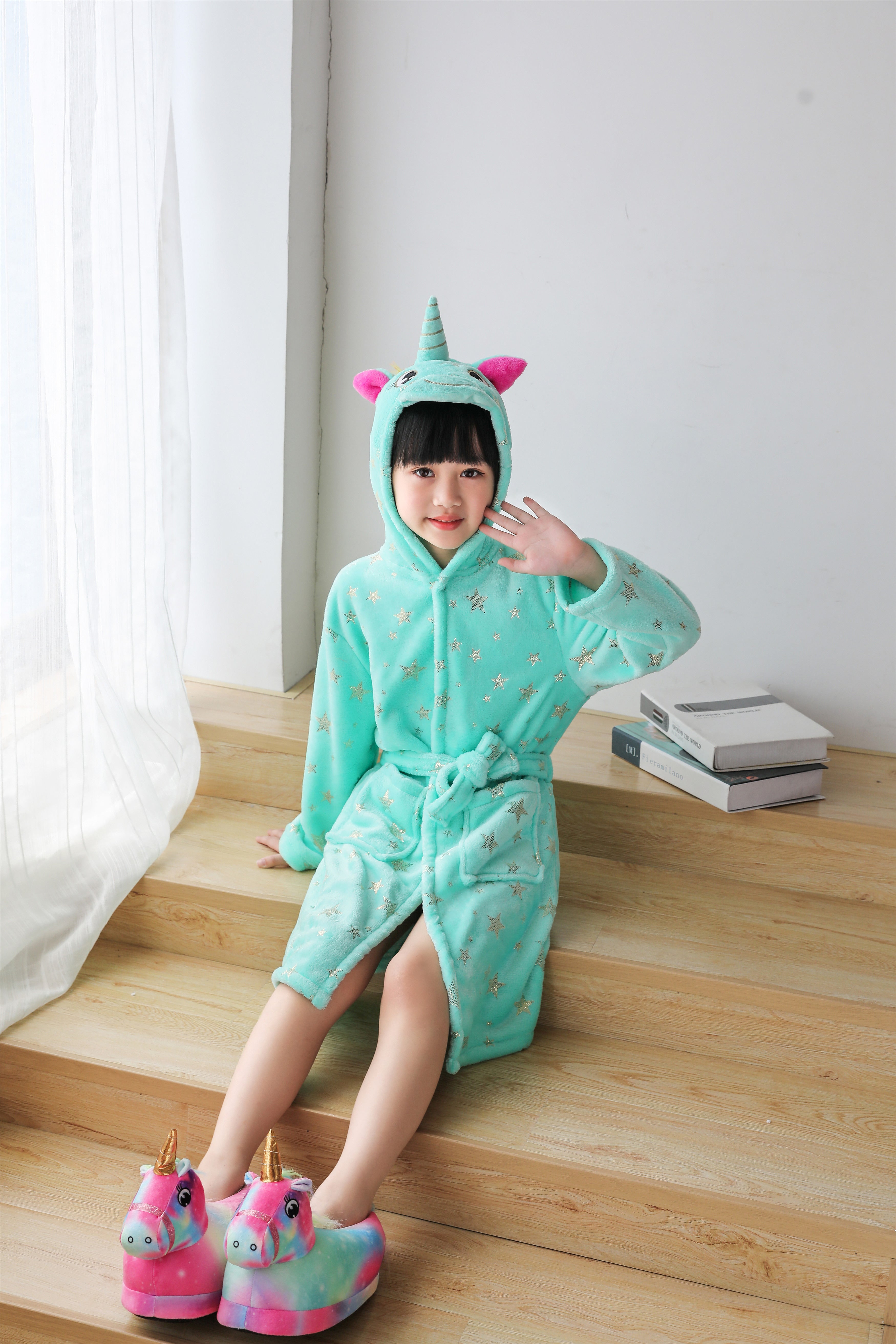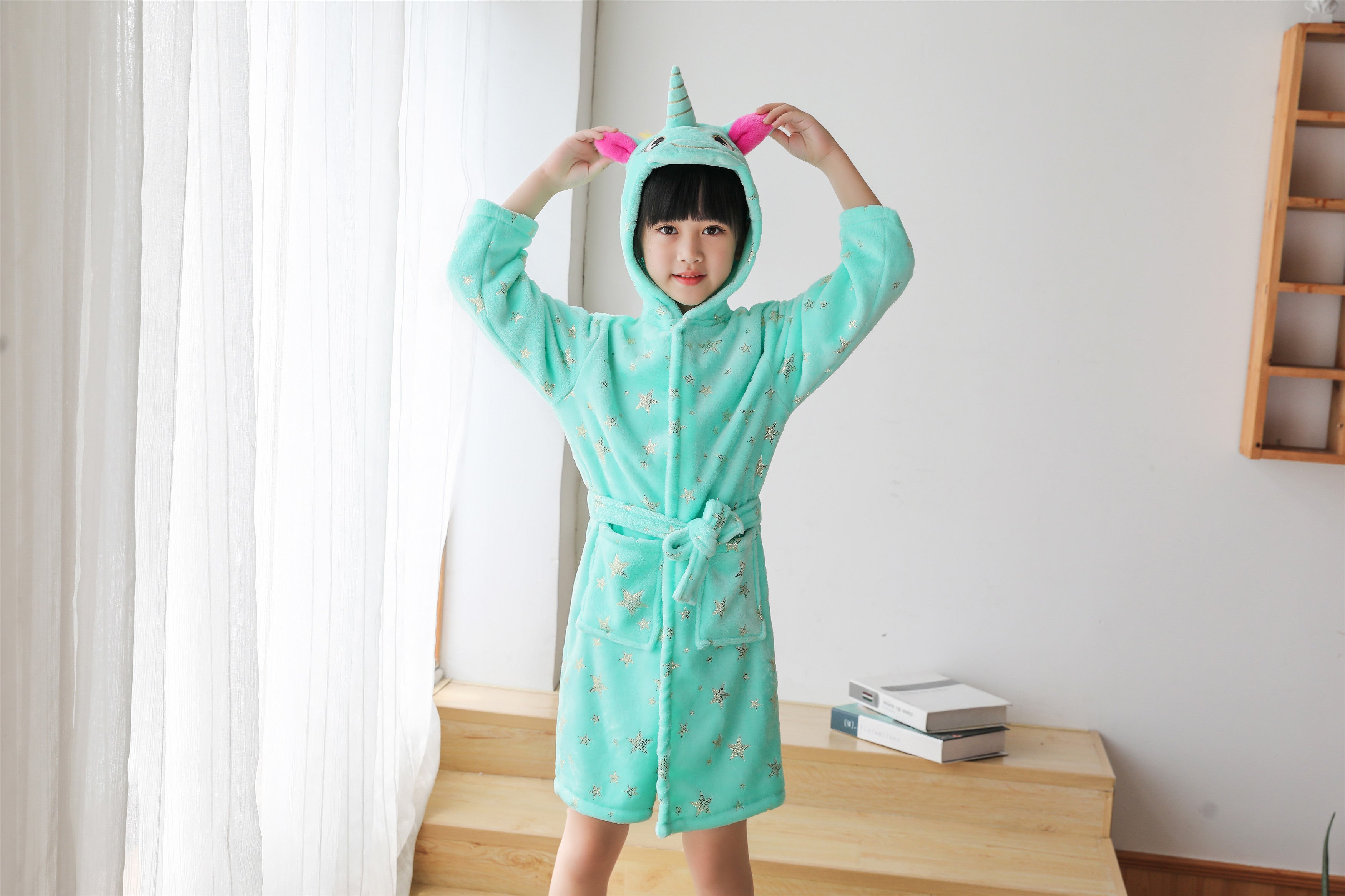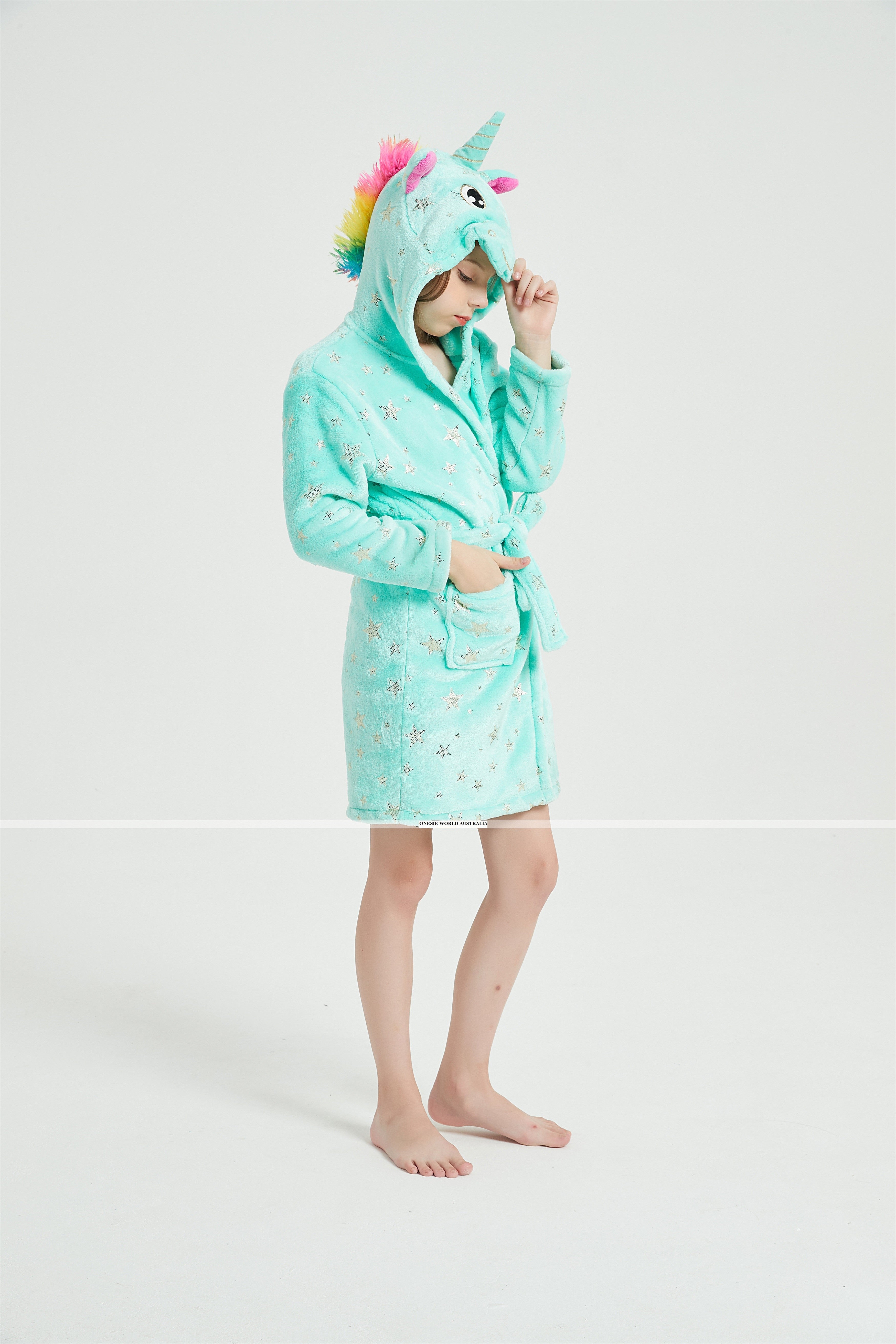 Unicorns are magical creatures and now you can have magical adventures in this soft, comfortable unicorn bathrobe hoodie.