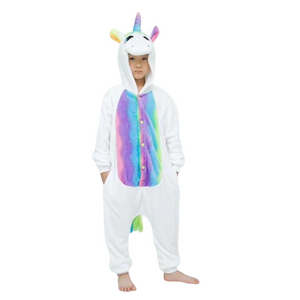 Toy Farm Unisex Animal Pyjamas Cosplay White Unicorn With Rainbow Wings Kids Onesie - Nightwear Halloween Carnival Novelty