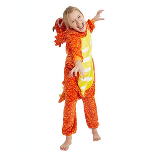 Toy Farm Unisex Animal Pyjamas - Orange Triceratops Dinosaur Kids Onesie (Cosplay / Nightwear / Halloween / Carnival / Novelty Costume)