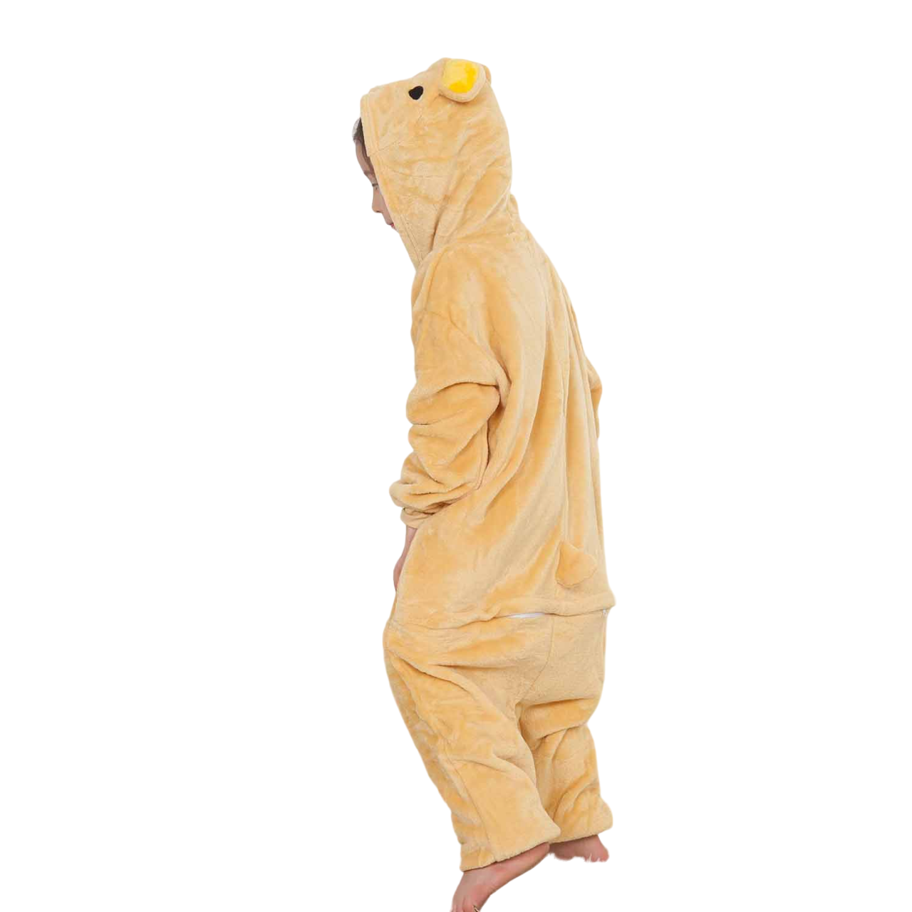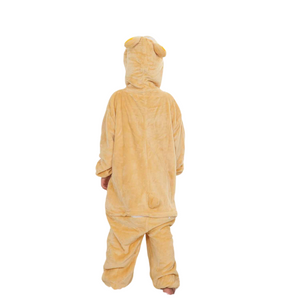 Our Rilakkuma Cosplay Onesies have everything your kid's needs in a comfy yet stylish outfit. For one, this garment is so adorable that anyone who sees your child wearing it can't resist his charm. This yellow jumpsuit has a cute hoodie, featuring Rilakkuma's adorable face. It also has a white belly and a bear tail behind the onesie that complete the look.