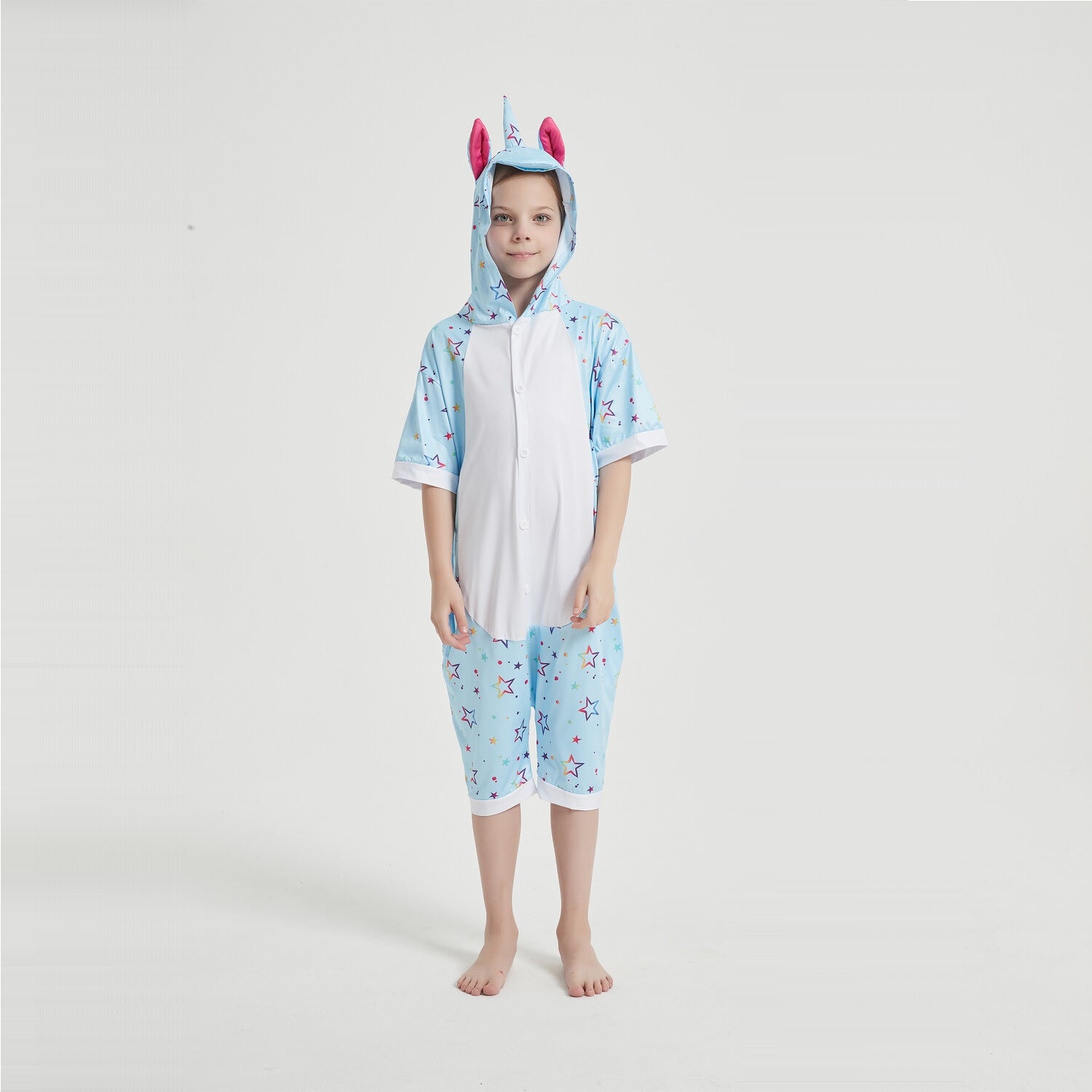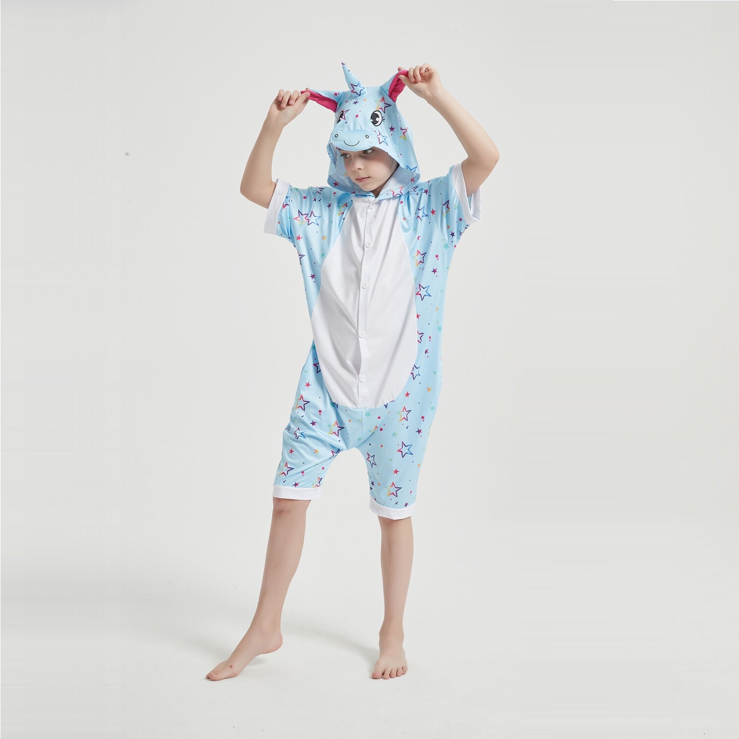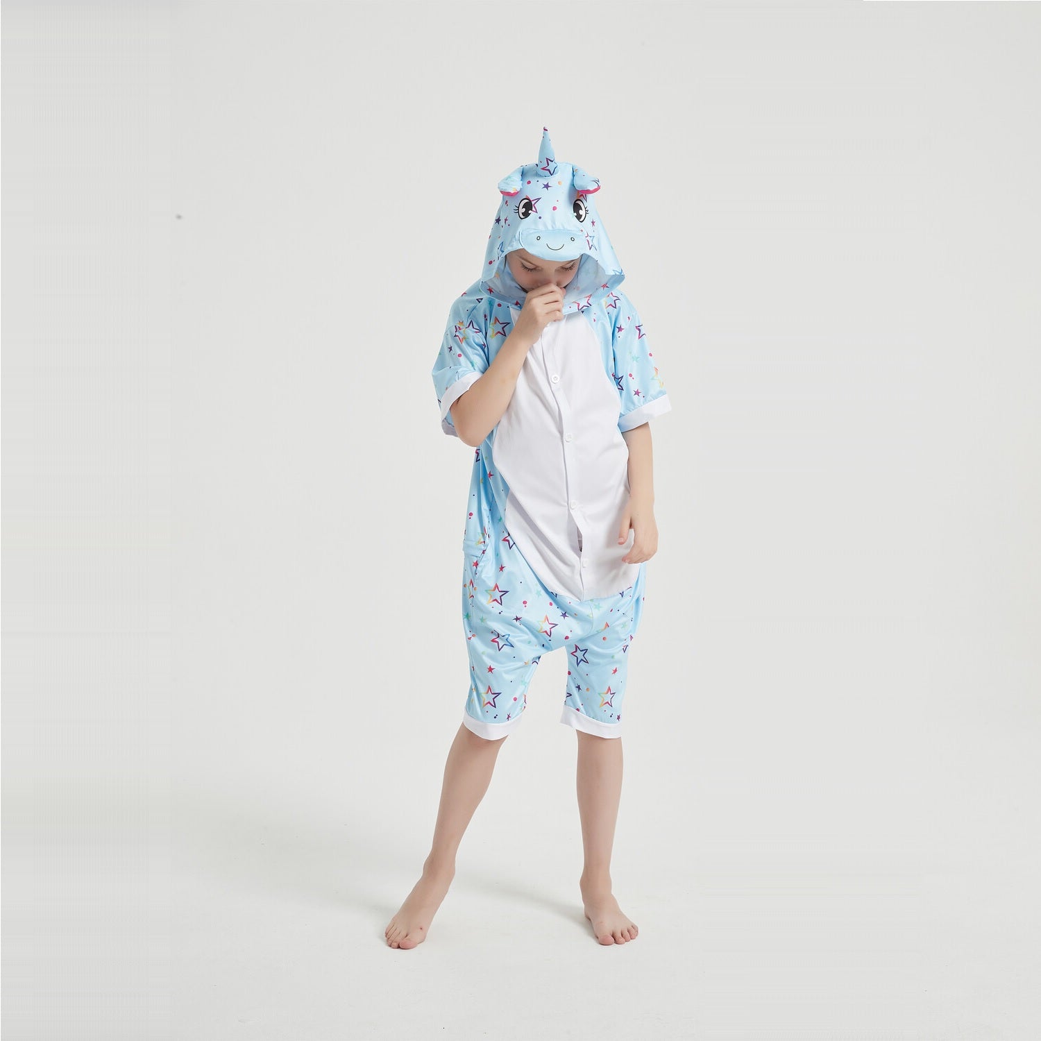 Toy Farm Unisex Animal Summer Pyjamas - Blue Star Unicorn Kids Summer Onesie (Book-week / Nightwear / Halloween / Pyjama Days)