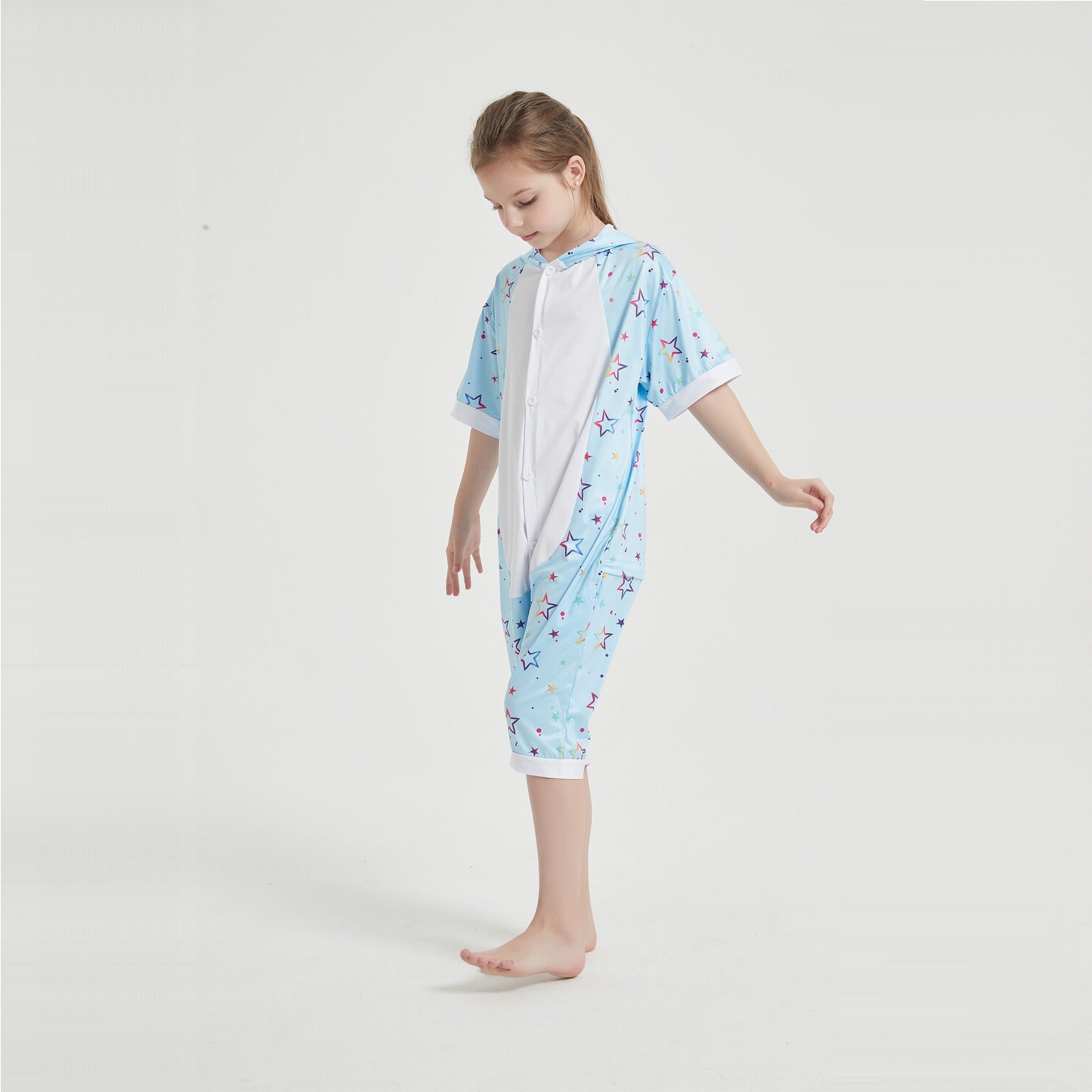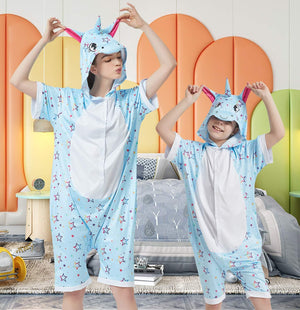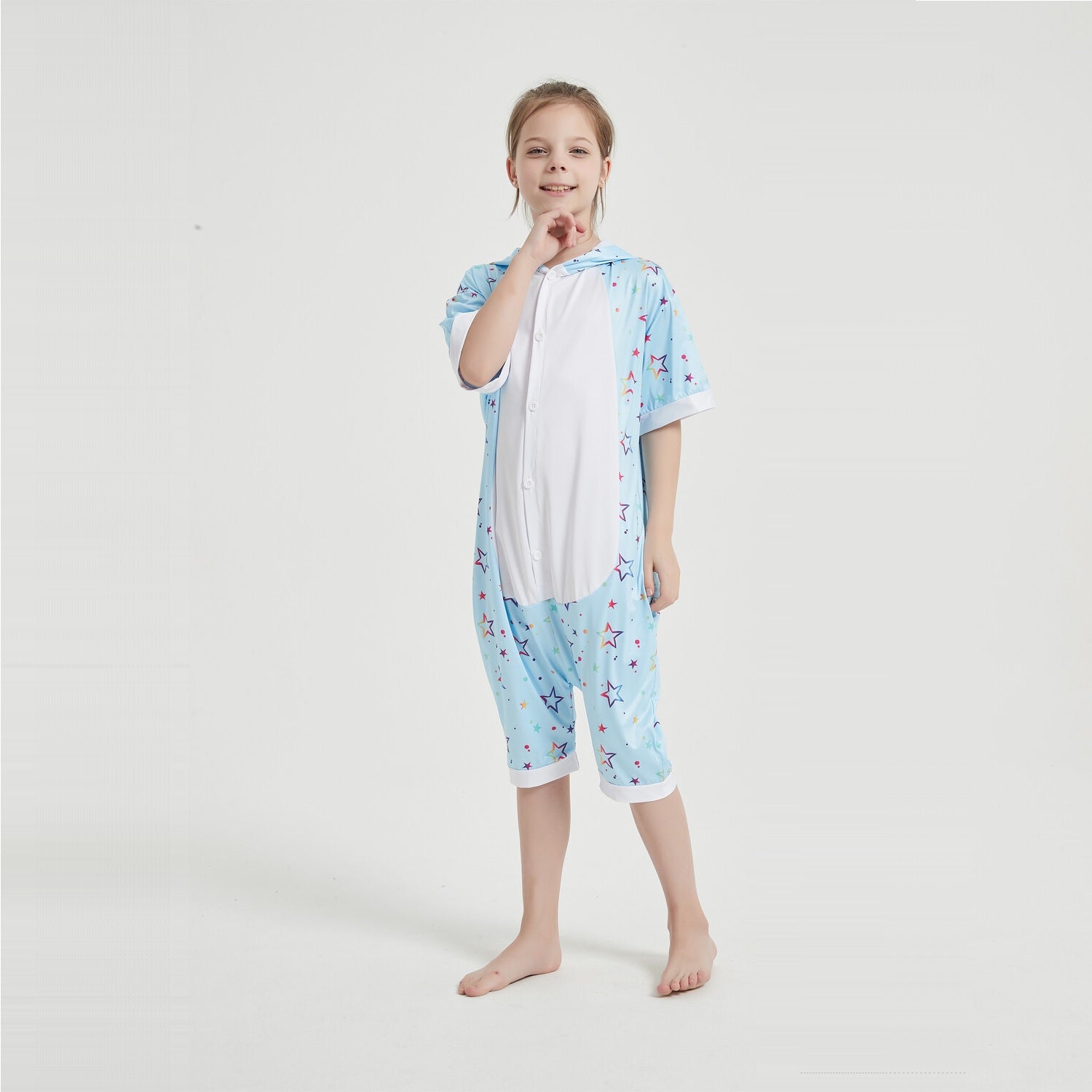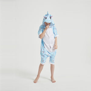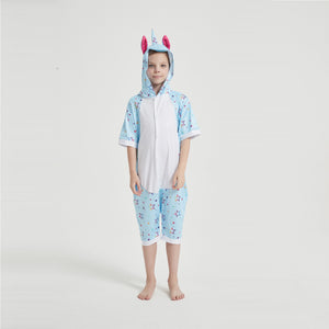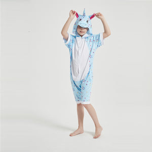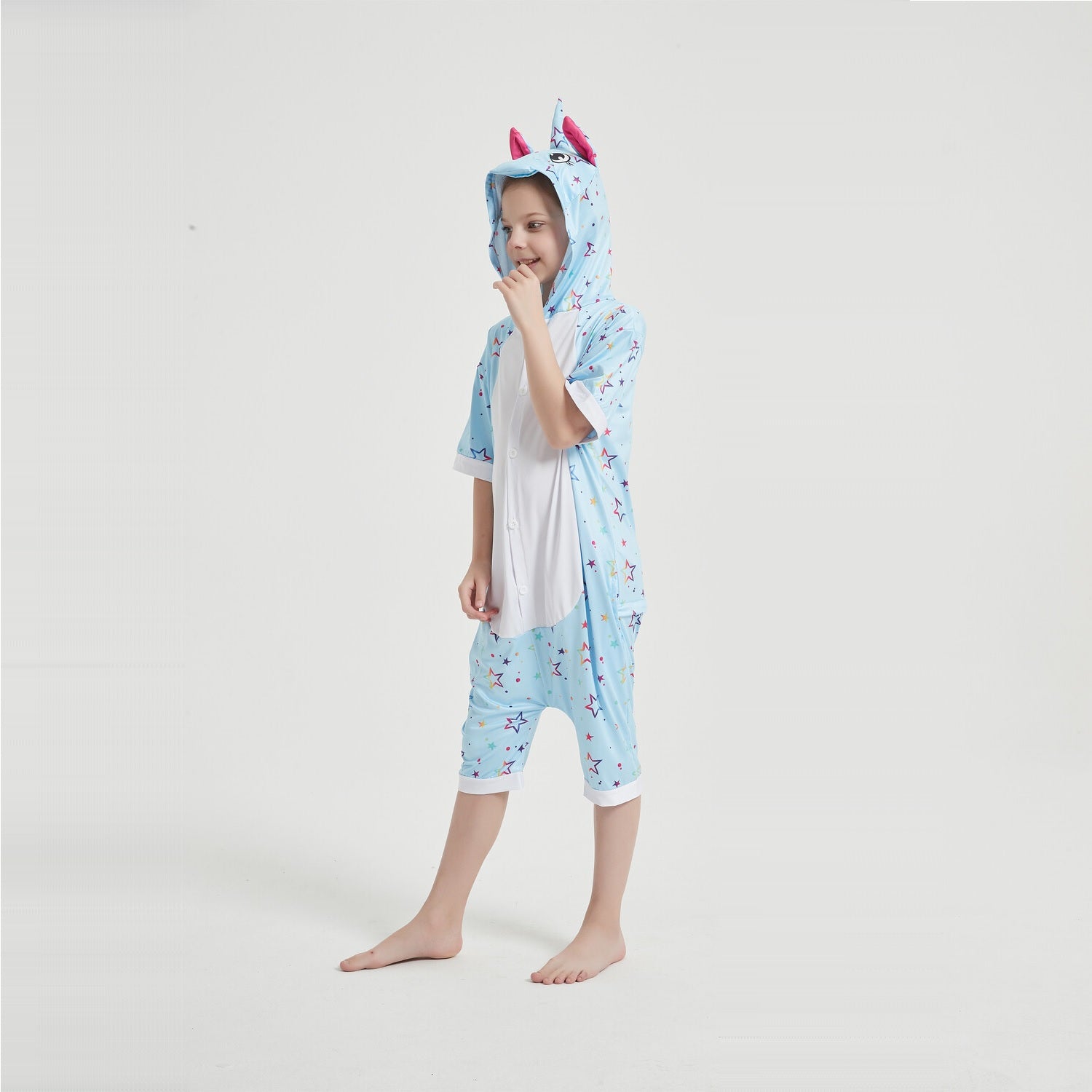 Toy Farm Unisex Animal Summer Pyjamas - Blue Star Unicorn Kids Summer Onesie (Book-week / Nightwear / Halloween / Pyjama Days)