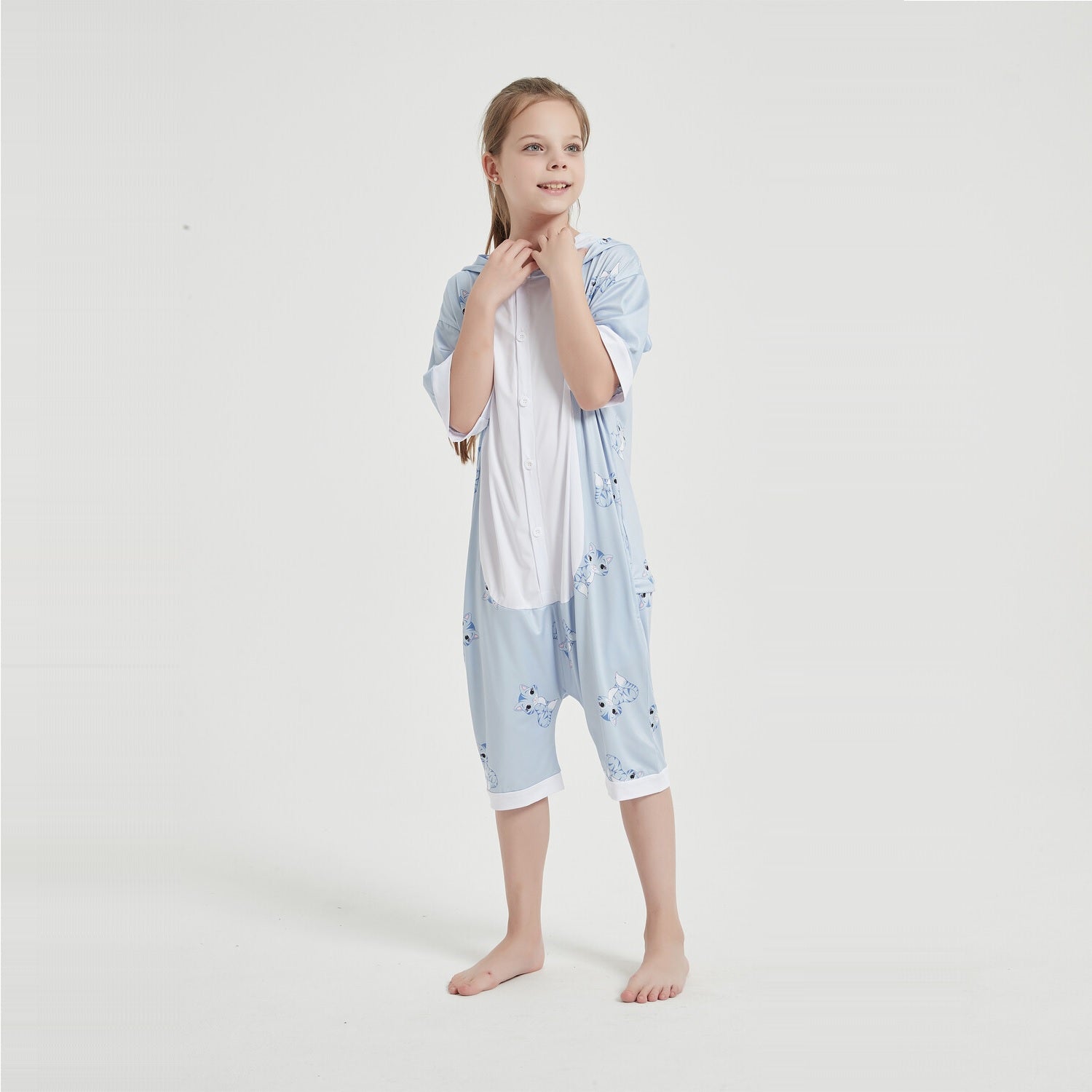 Toy Farm Unisex Animal Summer Pyjamas - Cat Kids Summer Onesie (Book-week / Nightwear / Halloween / Pyjama Days)
