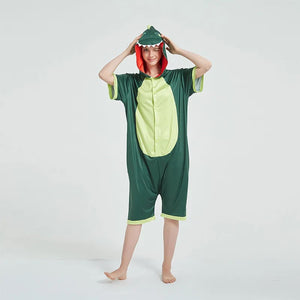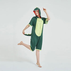 Toy Farm Unisex Animal Summer Pyjamas - Green Dinosaur Adult Summer Onesie (Book-week / Nightwear / Halloween / Pyjama Days)