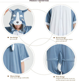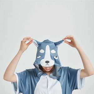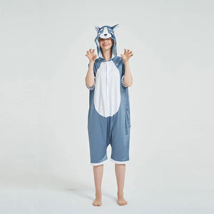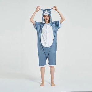 Toy Farm Unisex Animal Summer Pyjamas - Grey Husky Dog Adult Summer Onesie (Book-week / Nightwear / Halloween / Pyjama Days)