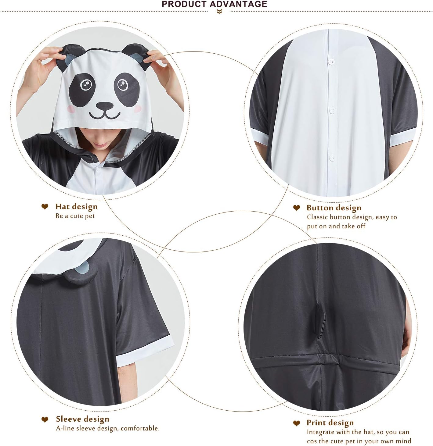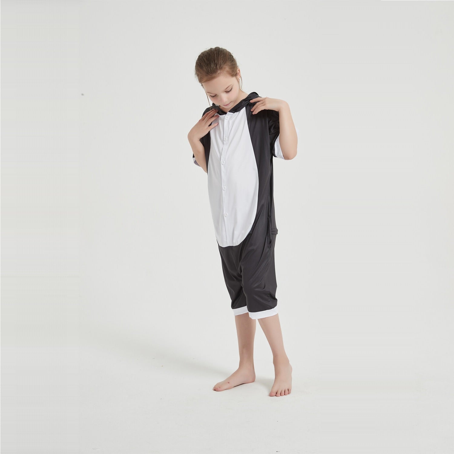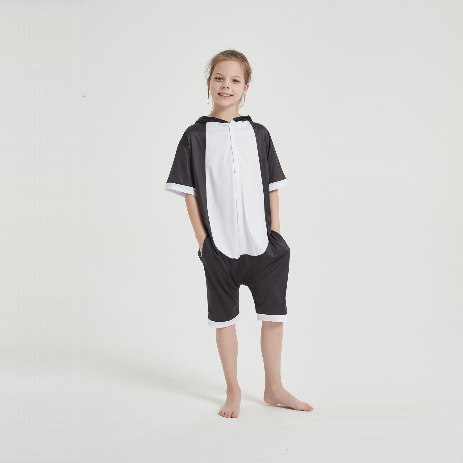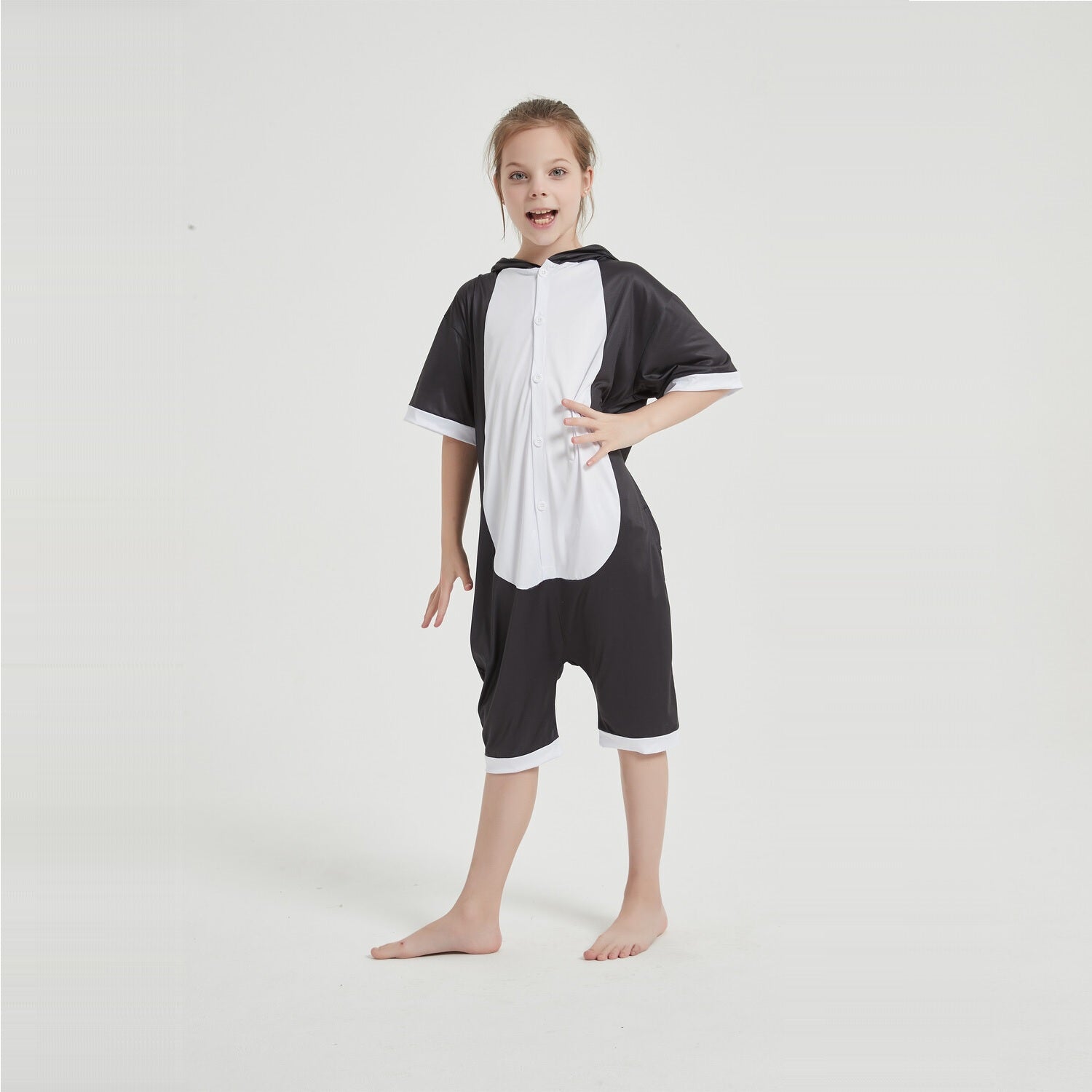Our Panda Summer onesie comes in the classic panda styling of black and white, with a really cute big eyed muzzle and a little bun tail on it's baggy backside. The Panda onesie is extremely classy with its minimalistic design and monochromatic style. You'll be the sharpest looking animal on any occasion, whether it is a fancy dress party or a sleepover bash.