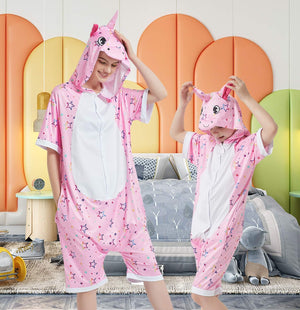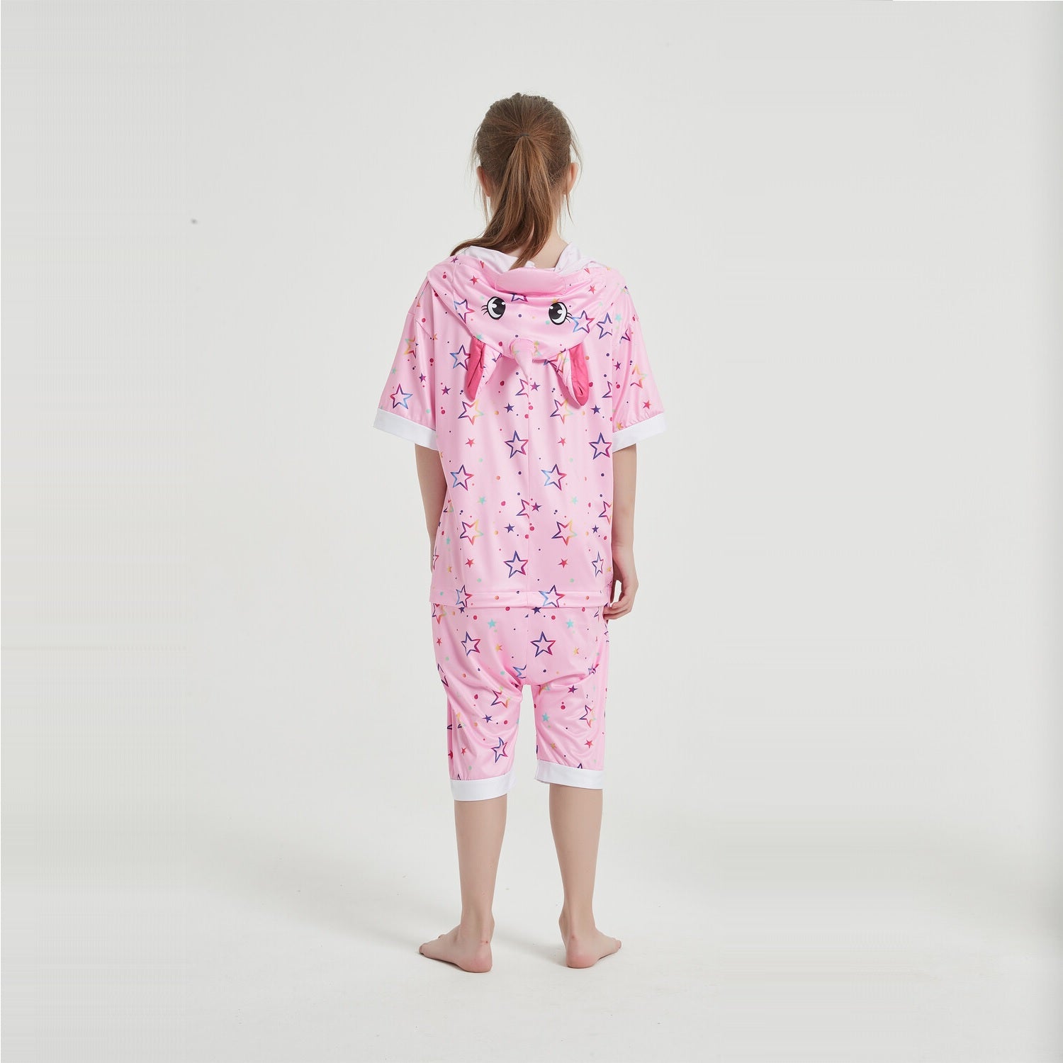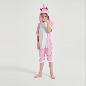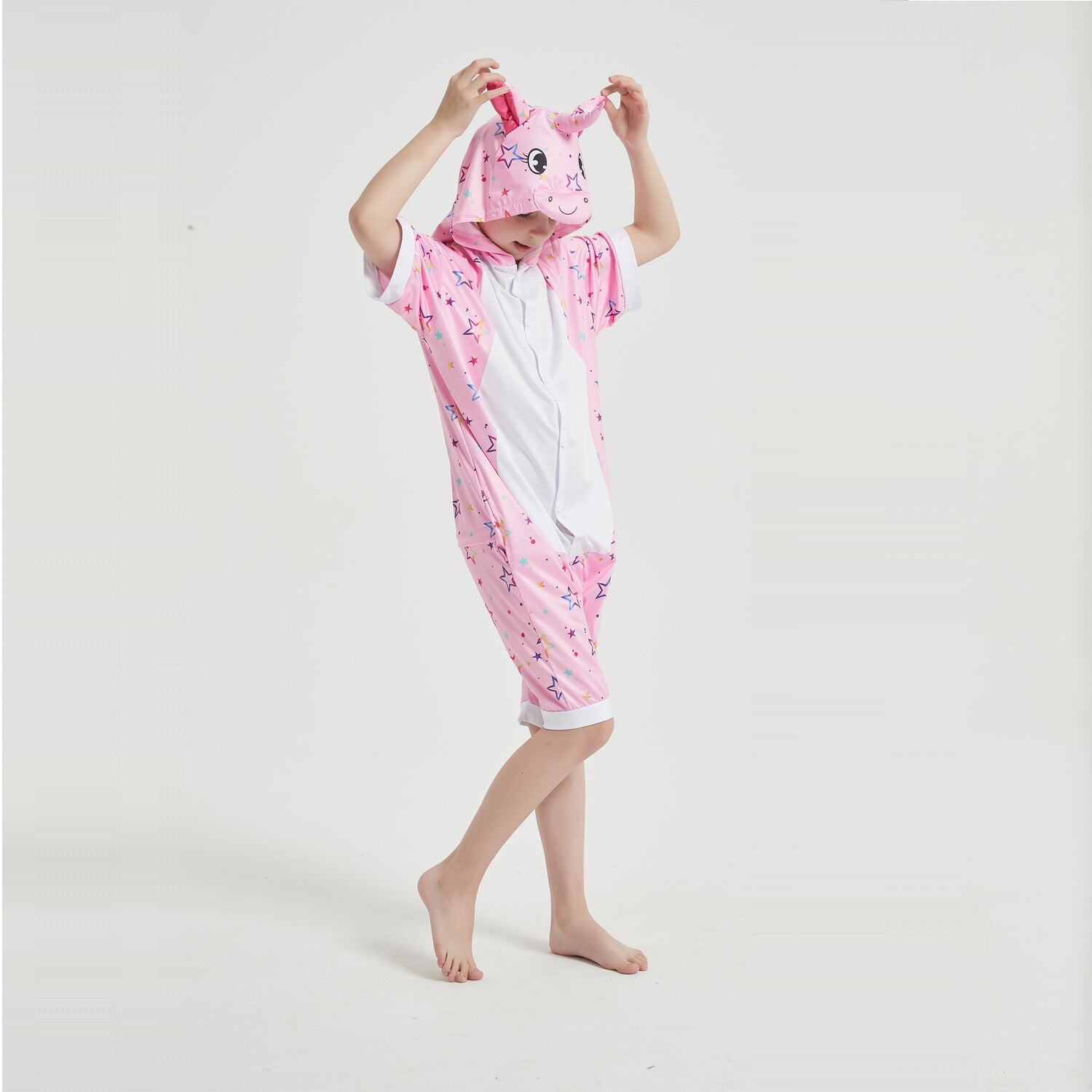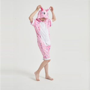 Toy Farm Unisex Animal Summer Pyjamas - Pink Star Unicorn Kids Summer Onesie (Book-week / Nightwear / Halloween / Pyjama Days)