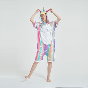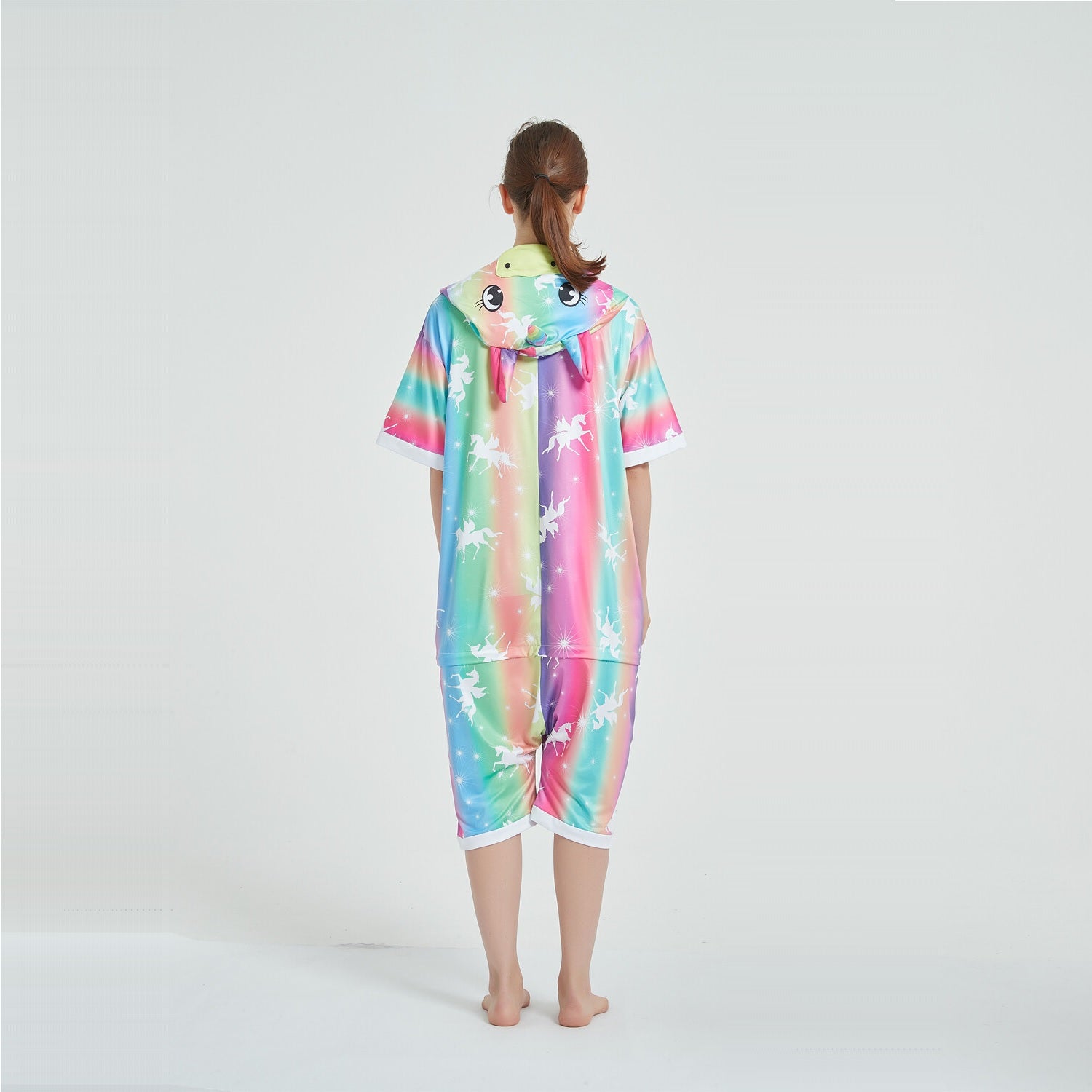 Toy Farm Unisex Animal Summer Pyjamas - Rainbow Stripes Unicorn Adult Summer Onesie (Book-week / Nightwear / Halloween / Pyjama Days)
