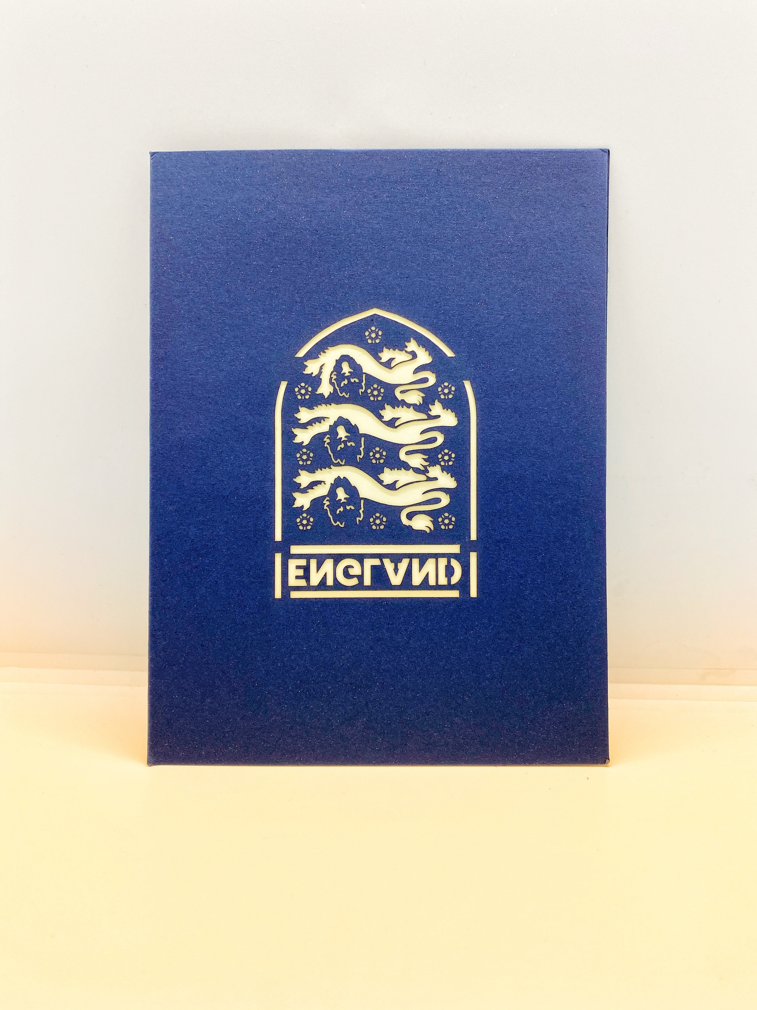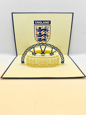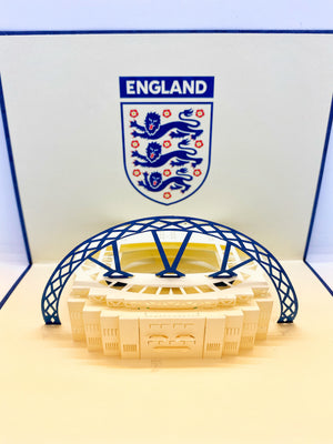Wembley 3D stadium pop up greeting/gift card. The card opens up to display the Wembley stadium in the form of a magnificent 3D pop up card model.